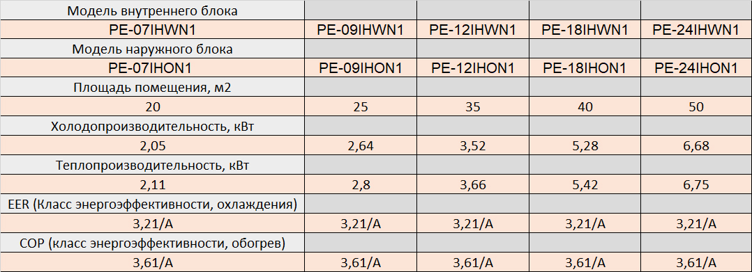 и соответствуют классу «А» энергосбережения, а значит экономичны и практичны в применении. При выборе мощности кондиционера, рекомендуется воспользоваться информацией по обслуживаемой площади, представленной